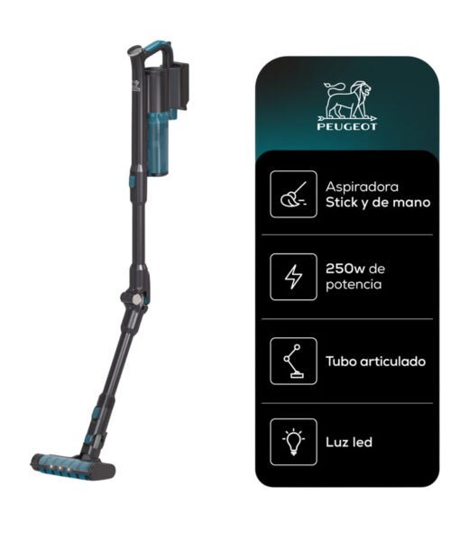 Aspiradora Inalámbrica Plegable De Mano Stick Peugeot Reims 3 En 1 Soplador 250w Luz Led Color Negro