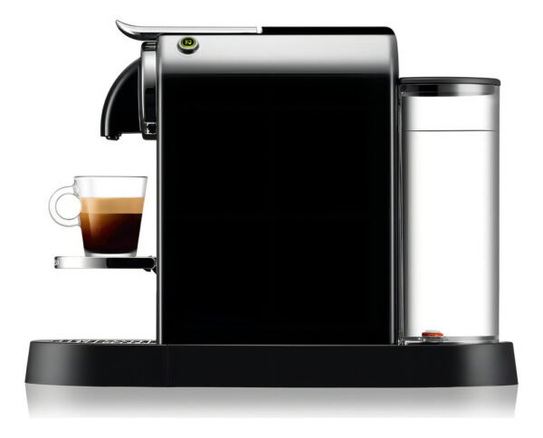 Con un diseño inspirado en la arquitectura urbana, la máquina CitiZ Black destaca por su elegancia esbelta y moderna, fusionando un toque retro que la convierte en un objeto de admiración. Su uso es simple, gracias a sus dos botones programables que permiten preparar fácilmente café Espresso o Lungo.