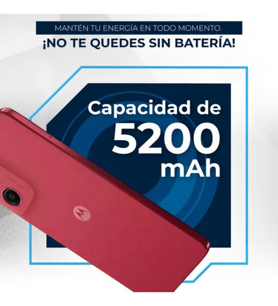 – Batería de 5200 mAh con Carga Rápida: Gran autonomía para todo el día y carga TurboPower para recargar en menos tiempo.