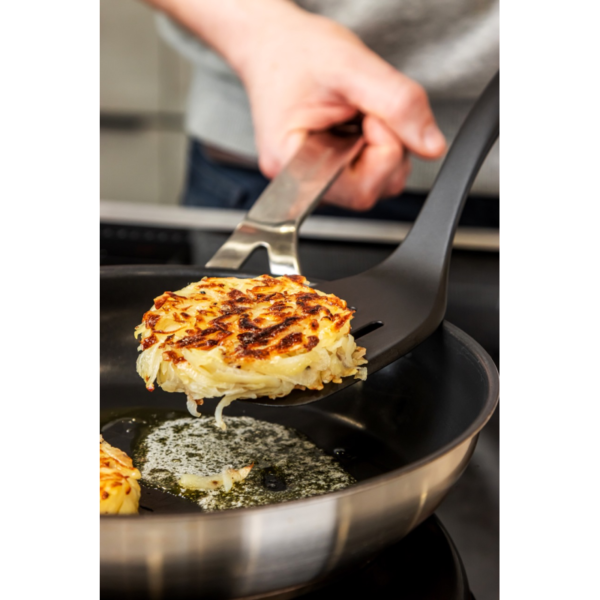 cuenta con un cabezal grande para voltear, revolver y escurrir los alimentos mientras se cocinan - ANTIADHERENTE SEGURO:
