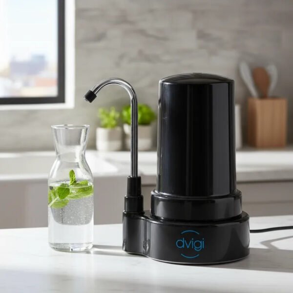 Instalado en el punto de uso, el Dvigi Compact Mini es perfecto para quienes valoran la salud y el bienestar familiar. Su diseño en color negro no solo es funcional, sino que también aporta un toque moderno a la cocina. Con dimensiones de 25.5 cm de altura, 17 cm de ancho y 13.5 cm de profundidad, es fácil de integrar en cualquier entorno.