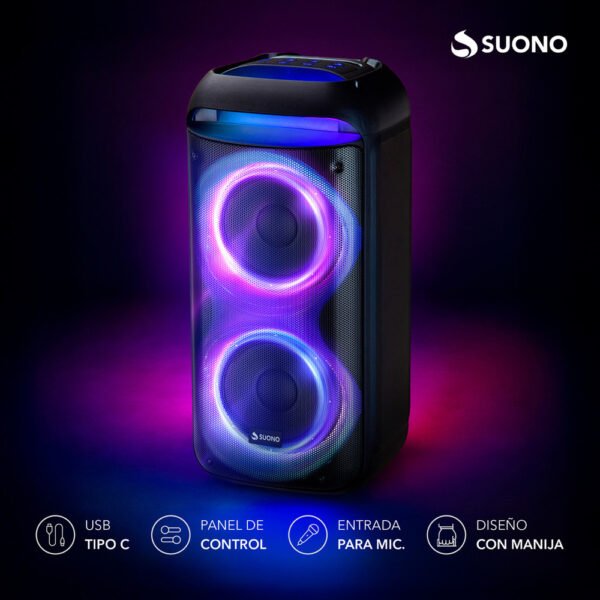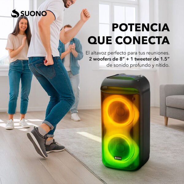 Parlante Suono Bluetooth 8” – Potencia, karaoke y luz que hacen vibrar tus momentos.