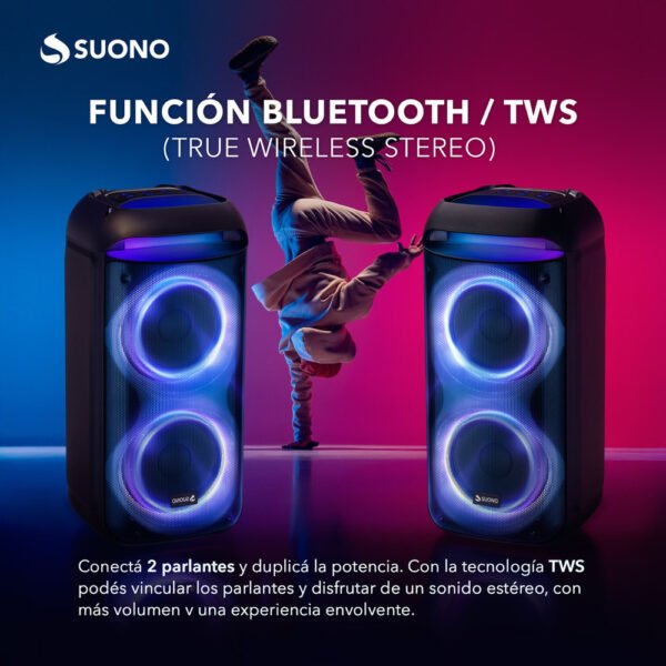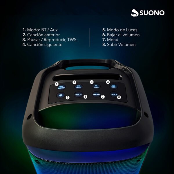 Parlante Suono Bluetooth 8” con Luz RGB, TWS y Karaoke – Potencia y Diversión en un Solo Equipo.