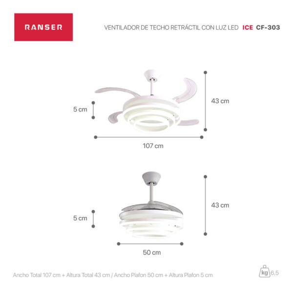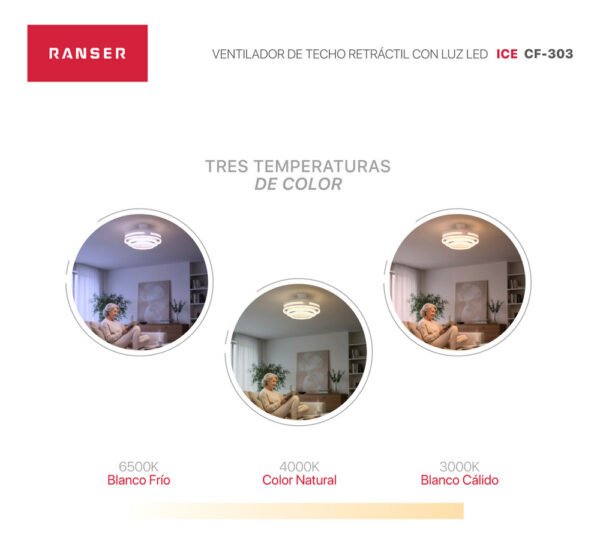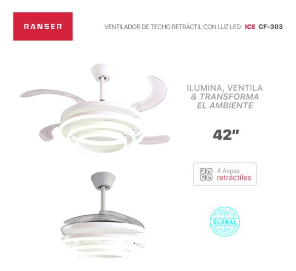 El RANSER CF-303 es un ventilador de techo retráctil moderno, silencioso y con un diseño minimalista único, ideal para quienes buscan dar un salto estético en el hogar. Su estructura incorpora 3 aros de luz LED, reemplazando el plafón tradicional y logrando un estilo más sofisticado, contemporáneo y decorativo. Este diseño minimalista encaja perfecto en livings modernos, dormitorios y espacios donde querés una iluminación protagonista sin perder funcionalidad.